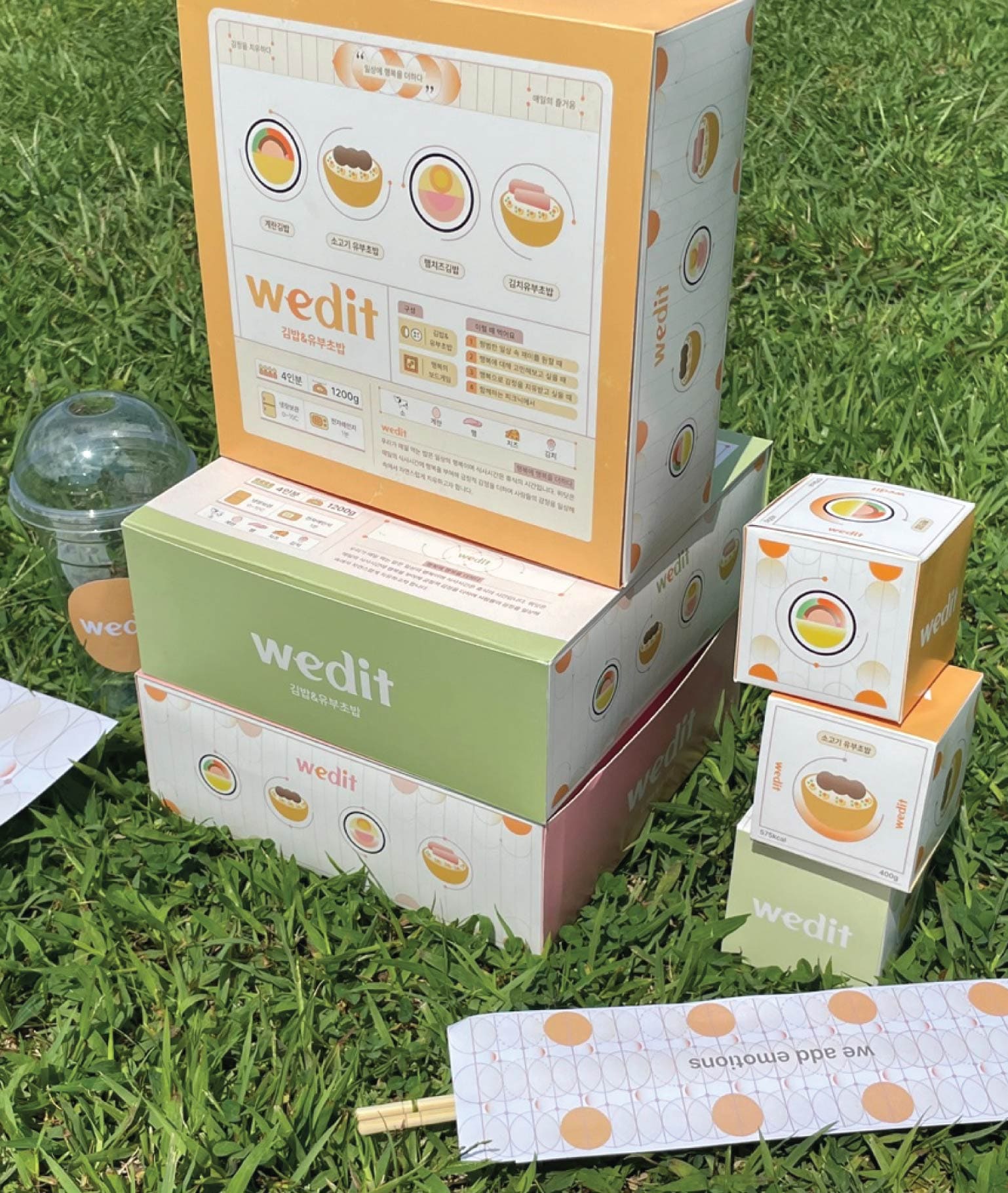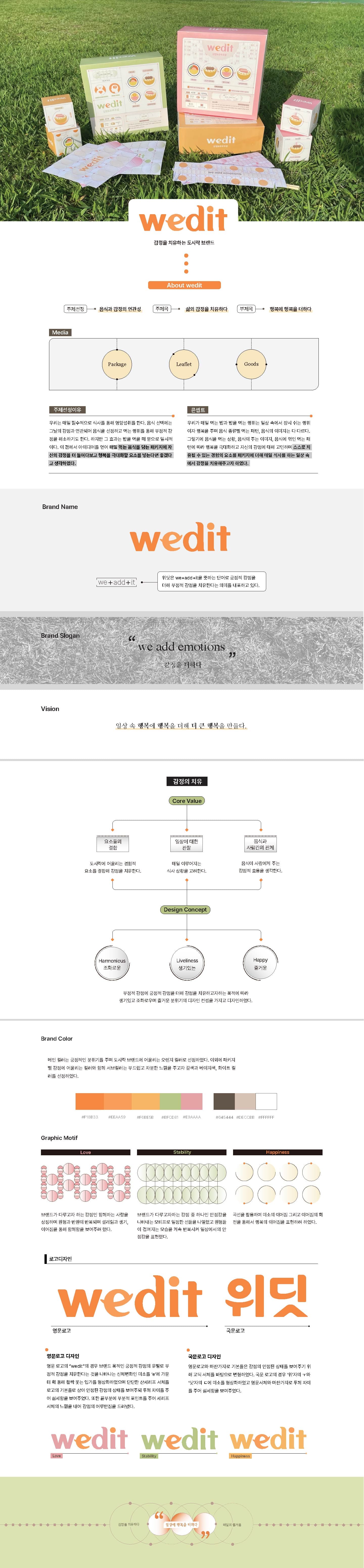 우리는 매일 필수적으로 식사를 통해 영양섭취를 한다. 음식 선택은 그 날의 감정과 관련이 있으며, 음식을 선택하고 먹는 행위를 통해 부정적 감정을 해소하기도 한다. 하지만 그 효과는 음식을 섭취할 때 뿐으로 일시적이다. 이 점에서 아이디어를 얻어 매일 먹는 식사를 담는 패키지에 사람들의 감정을 치유하고 일상의 행복을 극대화할 수 있는 요소를 담으면 좋겠다는 생각에 위딧(wedit)이라는 도시락 브랜드를 기획하였다. '위딧'의 패키지는 여러 감정별로 나뉘어 제작되었으며, 스트레스 해소에는 매운 음식처럼 우리가 매일 먹는 음식들마다 가지는 이미지와 다른 섭취 상황을 고려해 패키지에 해당 음식과 어울리는 경험적 요소를 더하였다.